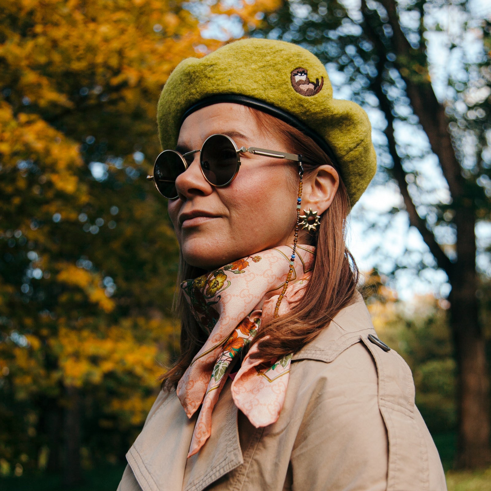 Oo so frenshi, aga Eesti sügisesse loodud. Aegumatu gläm - turule või Tornimäele ja kõik sinna vahele. Unustatud klassika uus tulemine. Nahast äär, puuvillasest batist kangas sees ja paelaga suurus reguleeritav.