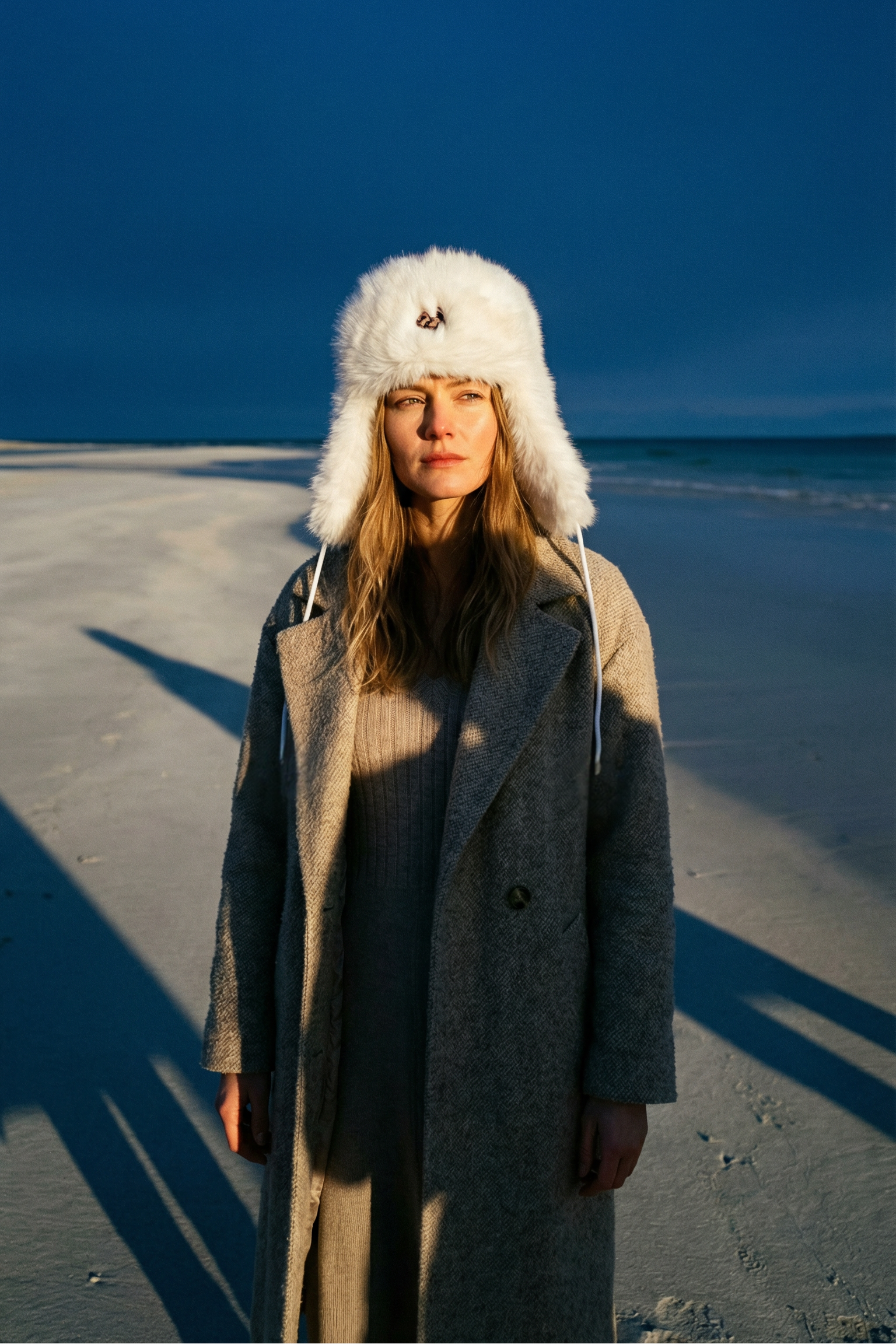 Valge, karvane ja sooja sisuga läkiläki. Majesteetlik nagu hääletult lumes jahti pidav jäärebane, ise tegelt 100% vegan, kangajääkidest Eestis disainitud & õmmeldud kvaliteetmüts.