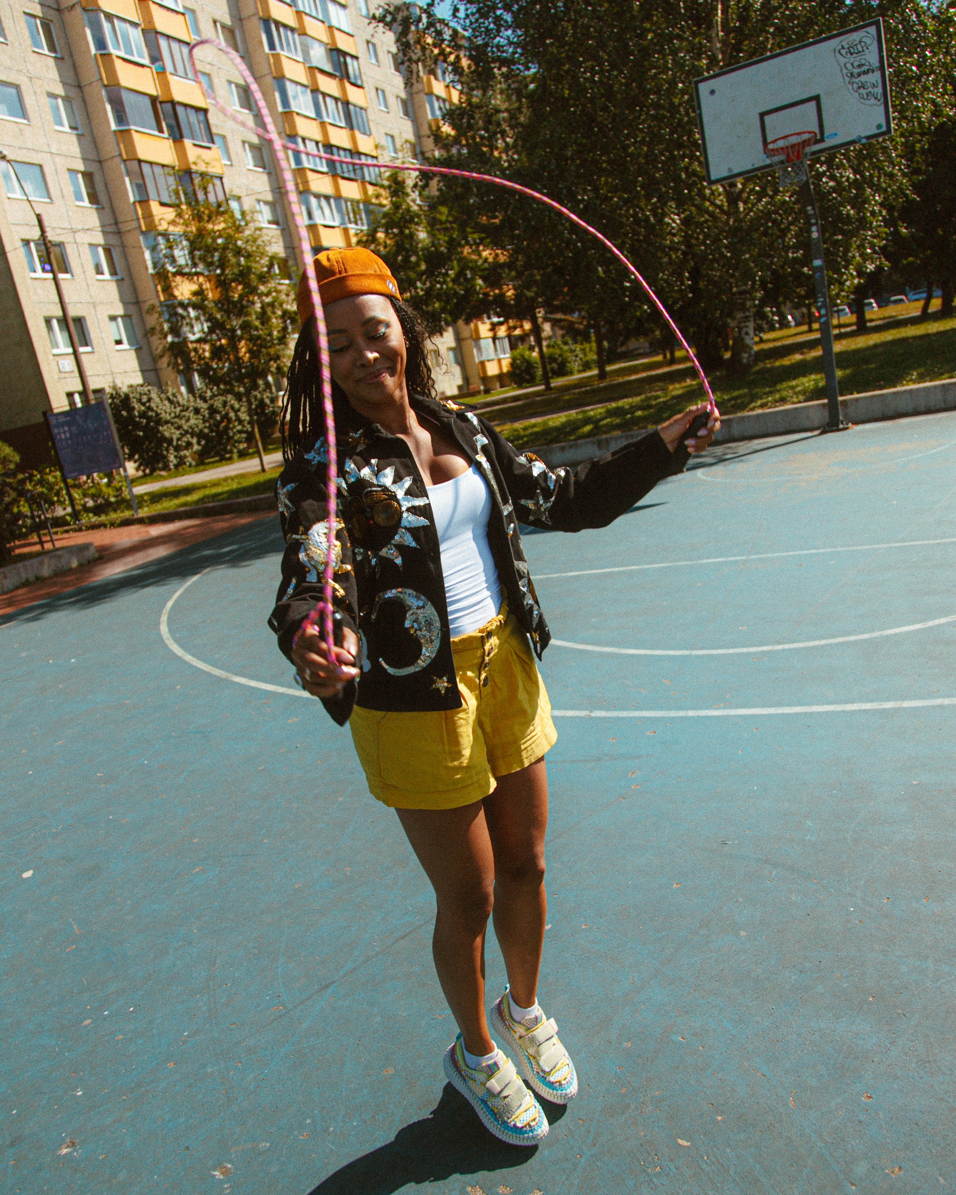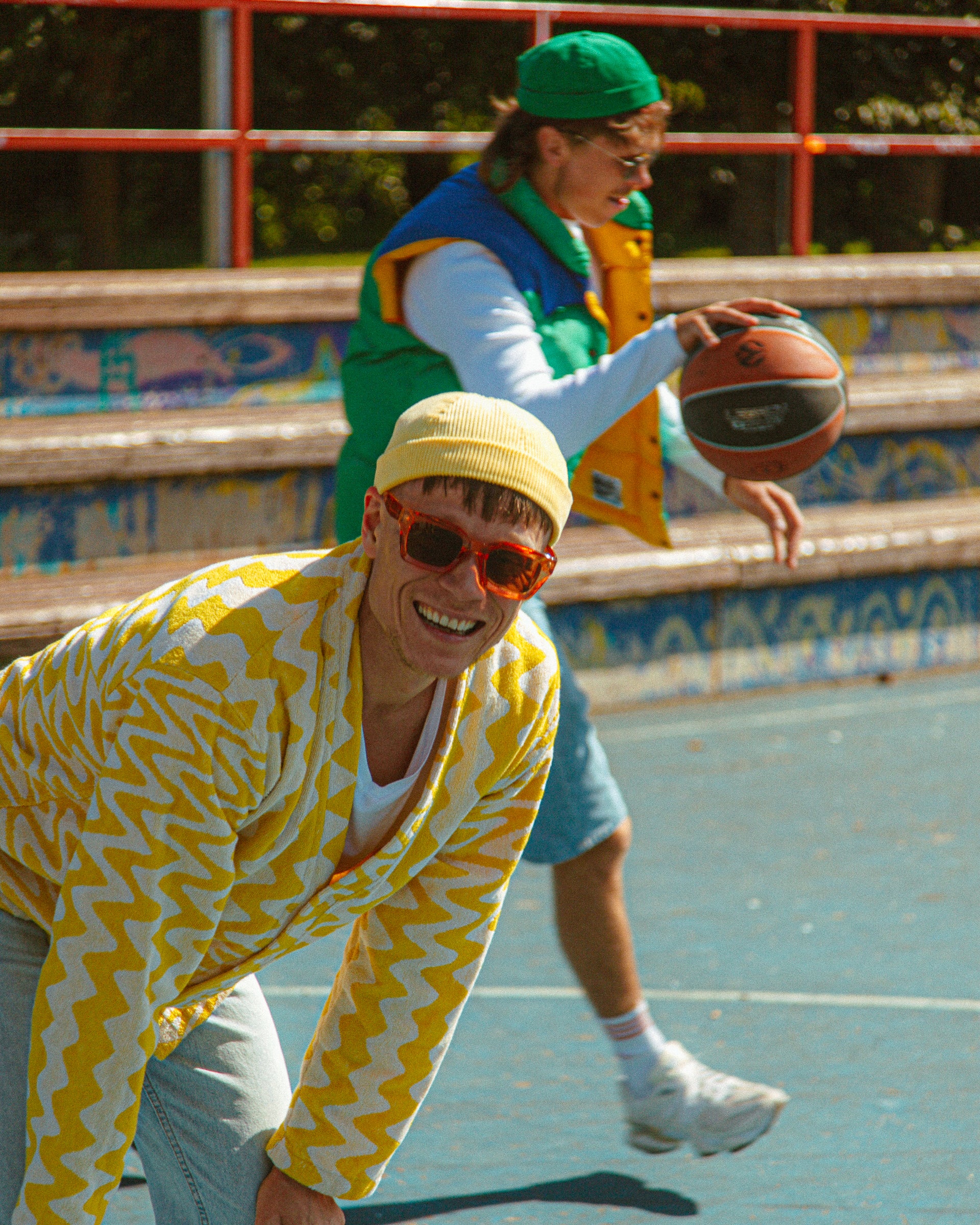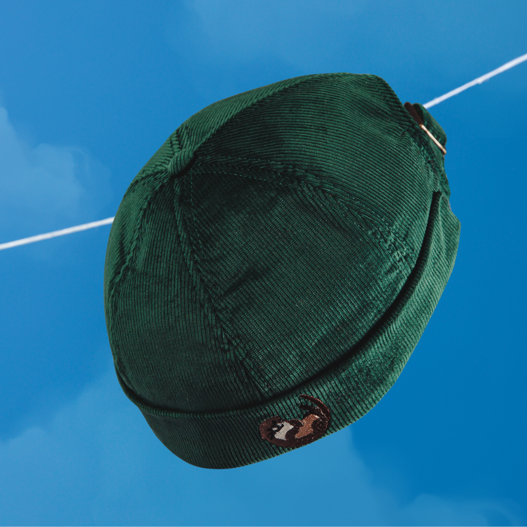 Tumeroheline, parajalt tiheda, aga mitte väga paksu velvet-triibuga murumüts on tehtud päästetud kangajäägist. Teisisõnu Upcycled ja pärit Inglismaa moemajast, kus sellest kangast õmmeldi enne midagi muud. Puuvillane velvet peas lubab ajudel hingata, kuid hoiab suurema tuule ja päikese kinni.